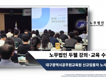 안녕하십니까, 노무법인 두웰 입니다. 지난 2025년 06월 17일 노무법인 두웰의 권혁영 노무사님께서 대구광역시남부교육지원청에서 실시한…